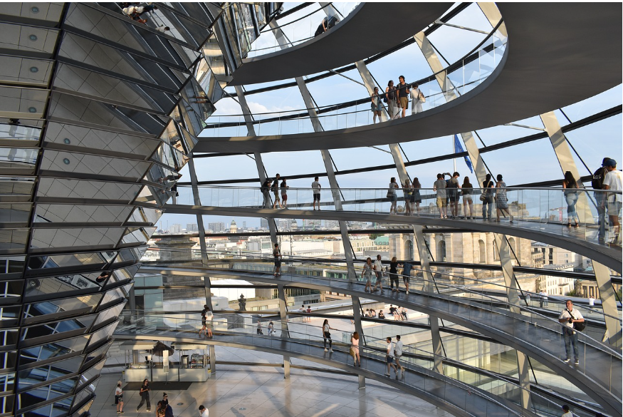 대표적인 건축물 중 하나는 라이히스타크(Reichstag), 즉 독일 국회의사당입니다. 19세기에 지어진 이 건물은 독일 통일 이후 개조되어, 유리 돔이 추가된 독특한 디자인으로 재탄생했습니다. 유리 돔은 베를린의 상징적인 건축 요소 중 하나로, 방문객들이 내부를 걸어 올라가며 도시의 전경을 360도로 감상할 수 있도록 설계되었습니다. 특히, 저녁 시간에 방문하면 베를린의 야경을 한눈에 내려다볼 수 있어 더욱 특별한 경험이 될 것입니다.